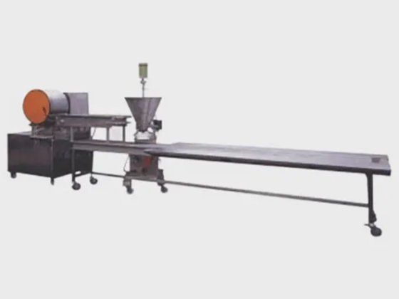 3. 單料桶出餡,採用氣壓切刀,計時器設定時間切斷下料。