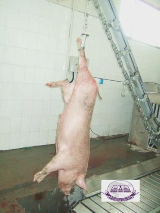 Which used to lift carcass from kill table to convey rail for bleeding