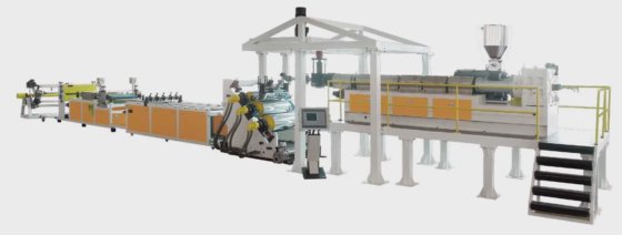PP / PS 包装片、文具装饰片挤出线:PP/PS 片材广泛用于食品、电子元件包装;各种砂、透明、倾斜纹理装饰片。我们能够按照客户要求提供多层片材挤出机,产量范围可选为100-1200kg/h。
